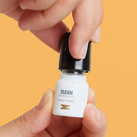 ¹ Valutazione di efficacia e sicurezza di Flavo-C® Forte tramite controllo dermatologico, strumentale e soggettivo su 30 donne, 45-70 anni con segni moderati di fotoinvecchiamento. ISDIN. Data on file, 2021.