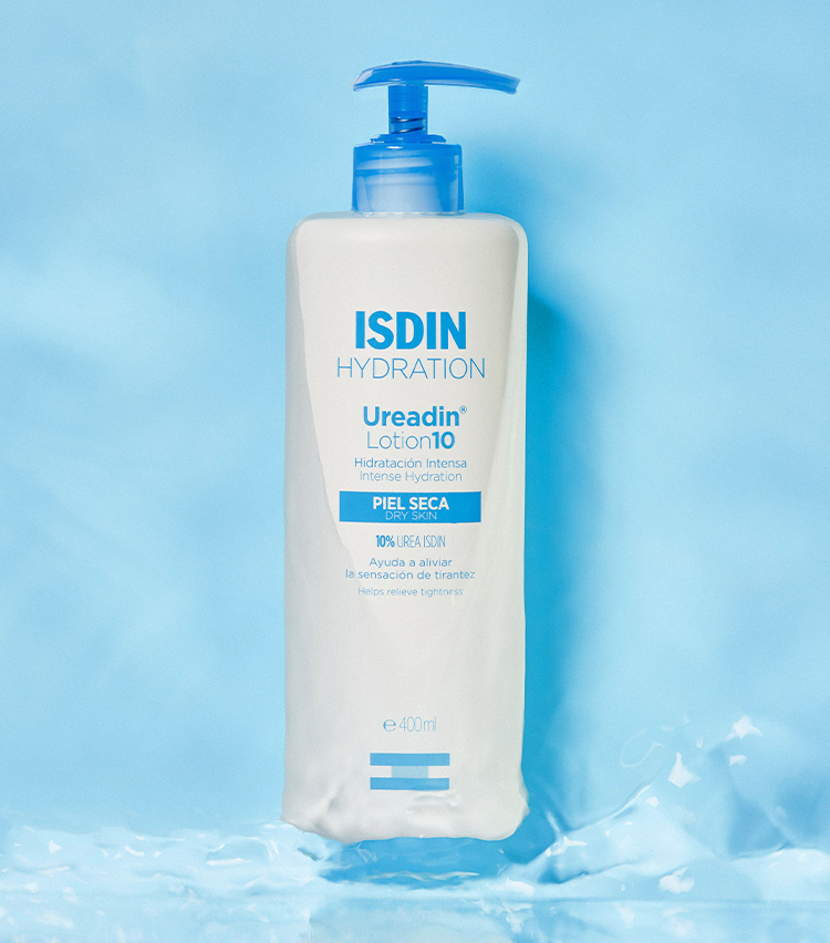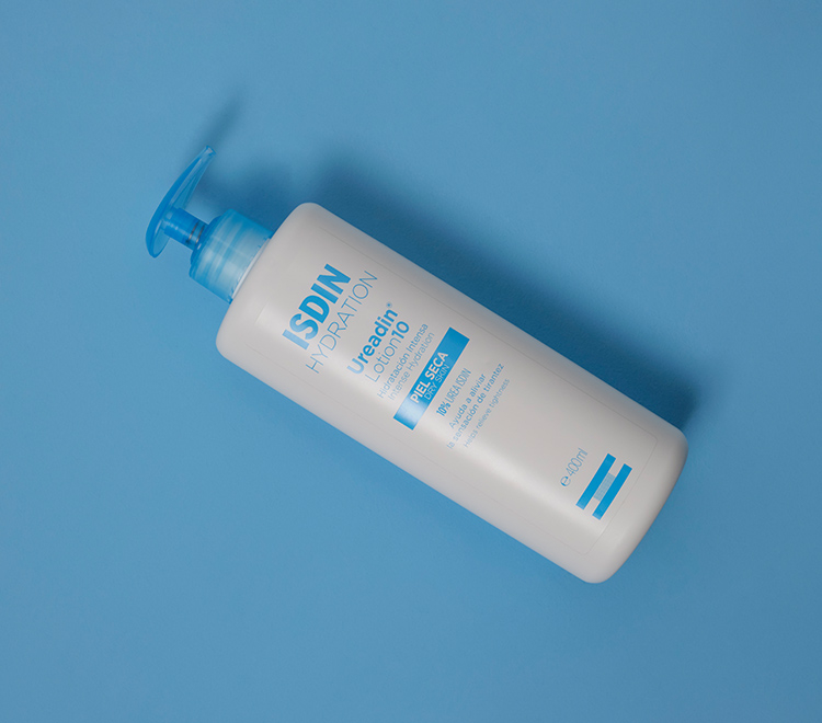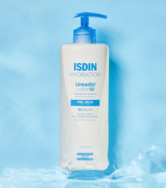 ¹ Valutazione dell'idratazione e della cosmeticità di ISDIN Ureadin® Lotion 10 per 28 giorni in 33 donne di età compresa tra 20 e 70 anni (con pelle secca e molto secca: 50% pelle sensibile e 50% con pelle atopica) applicazione 1 o 2 volte al giorno giorno . ISDIN, Data on file, 2022.