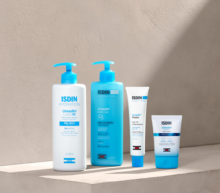 *Valutazione dell’idratazione e cosmeticità di Ureadin Lotion 10 durante 28 giorni su 33 donne tra i 20 e i 70 anni (con pelle secca e molto secca: 50% pelle sensibile e 50% con pelle atopica) applicazione una o due volte al giorno. ISDIN, Data on file, 2022.