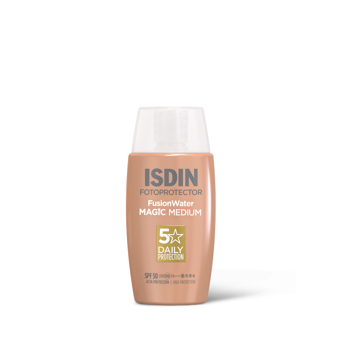 - Fotoprotettore ISDIN Fusion Water Color SPF 50: protezione solare per il viso ad alta protezione (SPF 50) e texture ultraleggera con colore. Apporta un effetto bonne mine, nasconde le imperfezioni, protegge e idrata la pelle. Il meglio? Non irrita gli occhi.