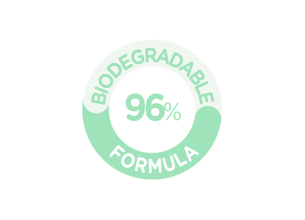 De formule is 96% biologisch afbreekbaar, berekend volgens de OECD 301-standaard die het niveau van biologische afbreekbaarheid analyseert.