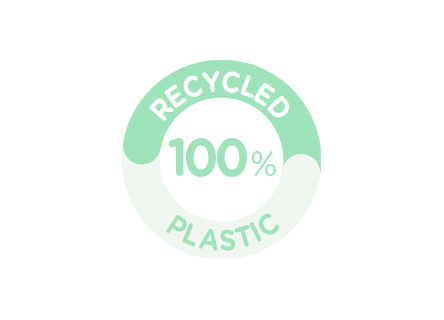 De verpakking is recyclebaar en de fles bevat 100% gerecycled plastic.