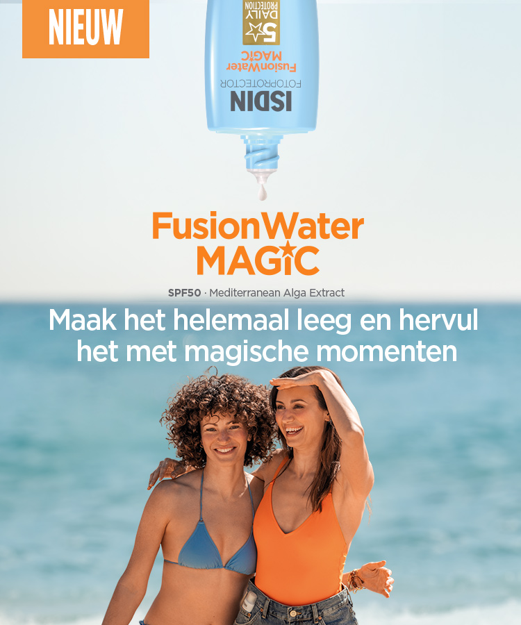 Dankzij Fusion Water van ISDIN zetten we ons in voor de Middellandse Zee: eElke verkochte Fusion Water zonnebescherming in 2024 zal bijdragen aan de verwijdering van het equivalent gewicht van de plastic verpakking uit de Middellandse Zee.