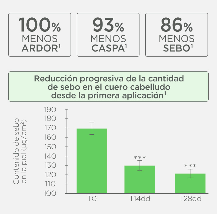 1. Estudio clínico para la evaluación subjetiva y para la evaluación mediante escoraje clínico de la eficacia anticaspa de un producto de investigación cosmético, aplicado durante 4 semanas, en sujetos adultos sanos. REF: FU.05.C.SL_2014⁄1335. 2014. Data on file.