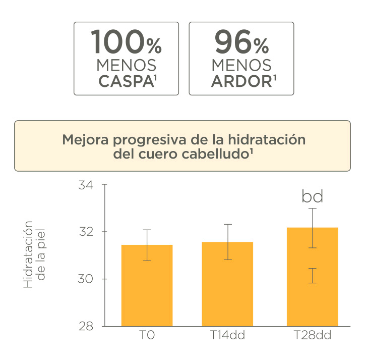 1. Estudio clínico para la evaluación subjetiva y para la evaluación mediante escoraje clínico de la eficacia anticaspa de un producto de investigación cosmético, aplicado durante 4 semanas, en sujetos adultos sanos. REF: FU.05.C.SL_2014⁄1393. 2014. Data on file.