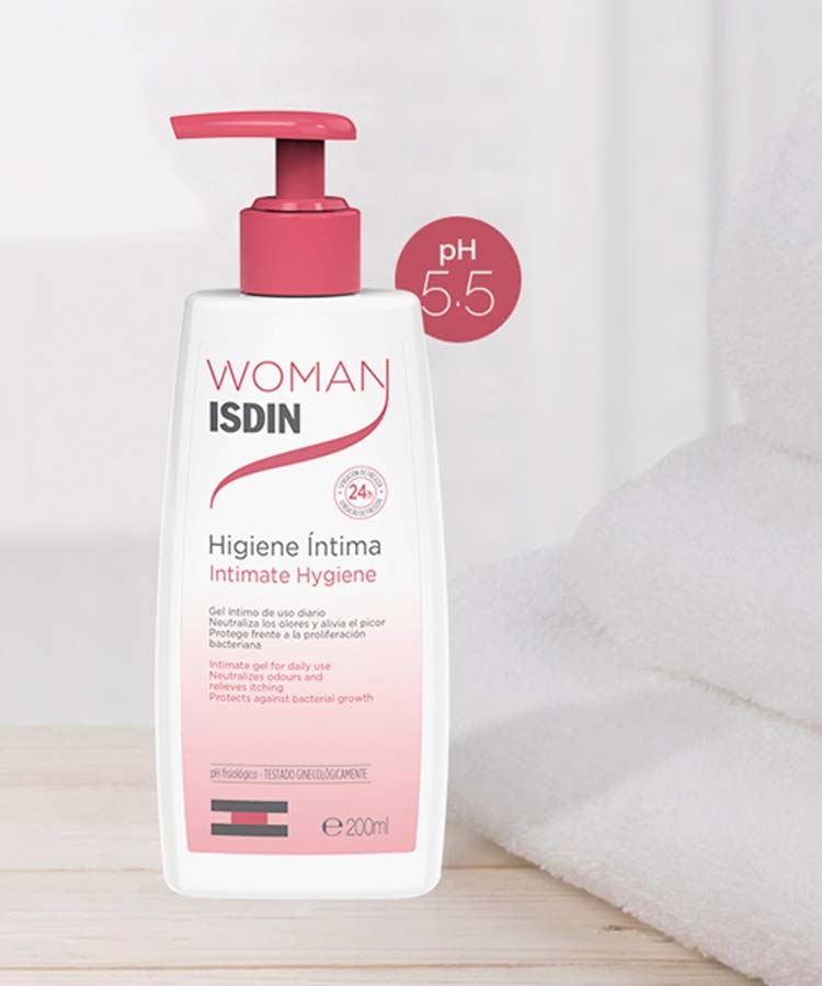 Woman ISDIN® Higiene Íntima es un gel de cuidado íntimo suave de uso diario que neutraliza los olores, alivia el picor y ayuda a prevenir y a proteger frente a agresiones microbiológicas externas e irritaciones. Con ph 5.5