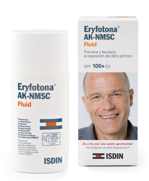 La exposición al sol causa un daño al ADN celular que se va acumulando a lo largo de los años y acaba transformándose en daño actínico. Se puede manifestar de forma leve, en arruga y manchas; o severa, en manchas con relieve, picor y descamación. Da a tu piel una nueva oportunidad con Eryfotona AK-NMSC. Eryfotona es mucho más que un protector solar, reduce y mejora el campo de cancerización cutáneo subclínico asociado a la Queratosis Actínica (AK) y al Cáncer de Piel no Melanoma (NMSC).