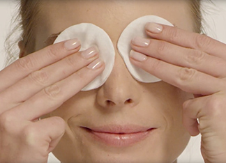 Demaquilar o rosto, do centro para as extremidades, usando a pressão leve e arrastando suavemente.