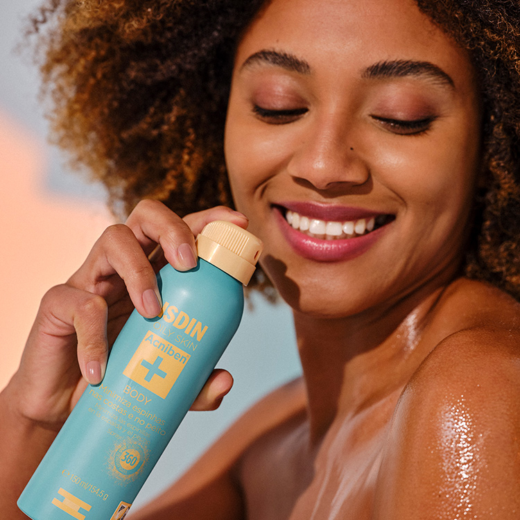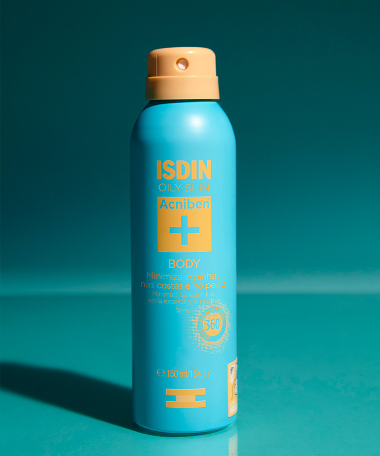 O spray corporal é ideal para combater as espinhas e marcas que elas deixam.