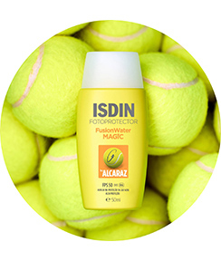Na ISDIN contribuímos para minimizar o impacto ambiental. Cuide e proteja sua pele com Fusion Water MAGIC by ALcaraz FPS 50 enquanto cuida do planeta.
