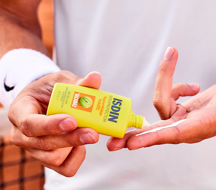 Desfrute do esporte ao ar livre com Fusion Water MAGIC by Alcaraz FPS 50, o protetor solar facial com textura ultraleve de uso diário com proteção Full Spectrum contra radiação UVB/UVA e auxilia na proteção a luz azul, infravermelho e poluição, além de ter resistência à suor e água. Ajuda a prevenir o estresse oxidativo causado pelo calor durante a prática esportiva graças à Proteção Thermal Aging.