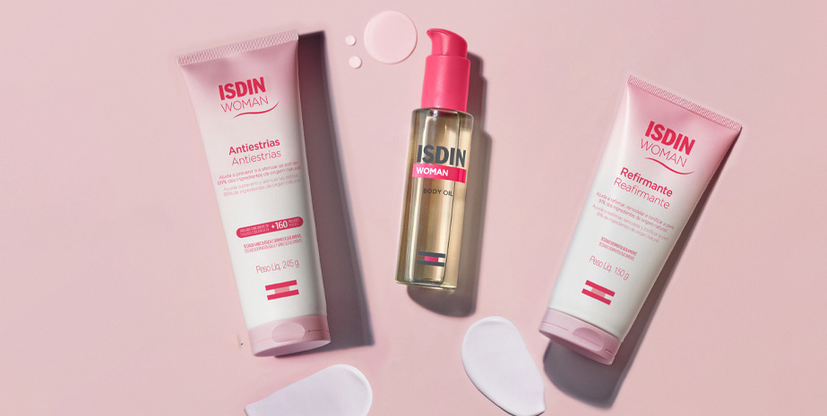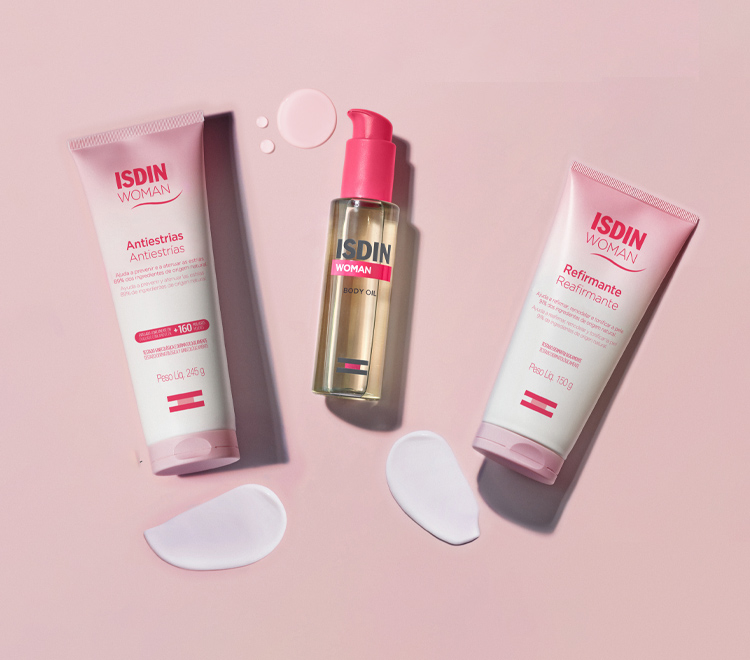 Conheça os produtos de Isdin Woman formulados especificamente para atuar na prevenção do aparecimento de estrias e melhorar a firmeza e a hidratação da pele.