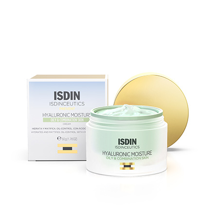 ² Contém 12,3% de alfa, beta e poli-hidroxiácidos (AHA, BHA, PHA) parcialmente neutralizados, equivalentes a 7,41% de ácidos livres. ³Avaliação clínica da aceitabilidade cutânea, da eficácia não comedogênica e do controle da oleosidade usado por 30 indivíduos entre 25-50 anos após 14 e 28 dias em condições normais de uso. ISDIN Data on file, 2023.
