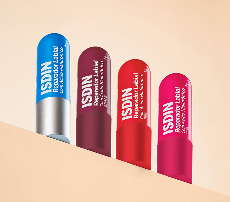 Qual cor vai escolher para os seus lábios hoje? Escolha entre o Reparador Labial Isdin Red, Grape ou Pink e mantenha os seus lábios sempre protegidos e hidratados.