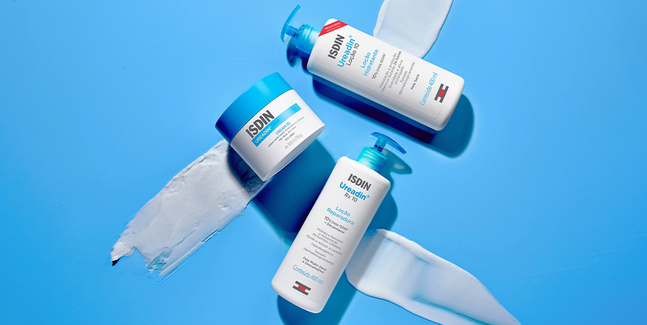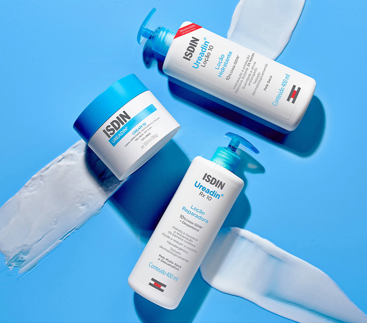 Escolha a fórmula que mais te agrada: Cream 10, com textura nutritiva e acabamento sedoso; Ureadin® RX 10 e Ureadin® Loção 10, para os fãs de loções frescas e leves.