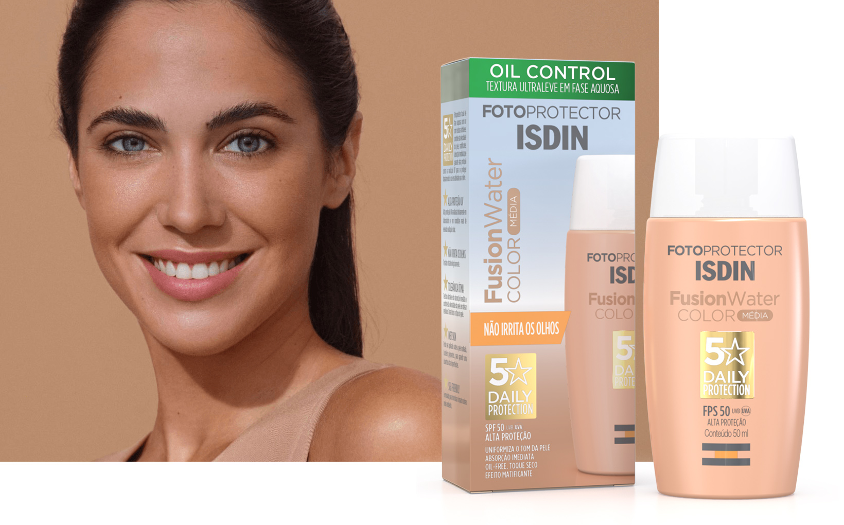 Fusion Water Color, com FPS 50, proporciona cobertura natural à sua pele com seus três tons: Clara, Média e Escura. O efeito do protetor facial com cor realça sua beleza natural. Procurando um visual saudável com ou sem maquiagem? A cor de Fusion Water Color é para você.