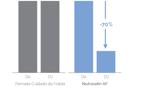 É comum que o rabinho do seu bebé, ao estar tapado e húmido, possa sofrer irritações. Em certas ocasiões, podem inclusivamente proliferar micro-organismos, dando lugar a infeções. Nutraisdin AF tem uma fórmula específica com propriedades antifúngicas, adstringentes e reparadoras. Evita o crescimento de microrganismos e repara e protege das irritações, assaduras e vermelhidões produzidas na zona da fralda. Sem corticóides. Se a pele do seu bebé está avermelhada, pergunte ao seu pediatra o que lhe pode aplicar.