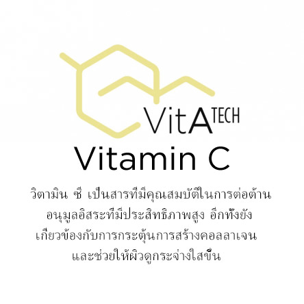 วิตามิน ซี บริสุทธิ์ อันทรงพลังในการช่วยปกป้องผิวของคุณจากแสงแดดและอนุมูลอิสระได้อย่างมีประสิทธิภาพ ช่วยกระตุ้นการสร้างคอลลาเจนและเพิ่มความขาวใสให้ผิว และการผสมผสานของสารโปรตีโอไกลแคน (proteoglycan) และ พรี-โปรตีโอไกลแคน (pre-proteoglycan) ช่วยให้ผิวอวบอิ่ม ฉ่ำน้ำ ผิวกระชับแน่น โครงหน้าได้รูป