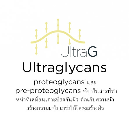 Ultraglycans: ผสมผสาน proteoglycans และpre-proteoglycans ที่ช่วยกักเก็บความชุ่มชื้น และเสริมความแข็งแรงให้แก่โครงสร้างผิว.